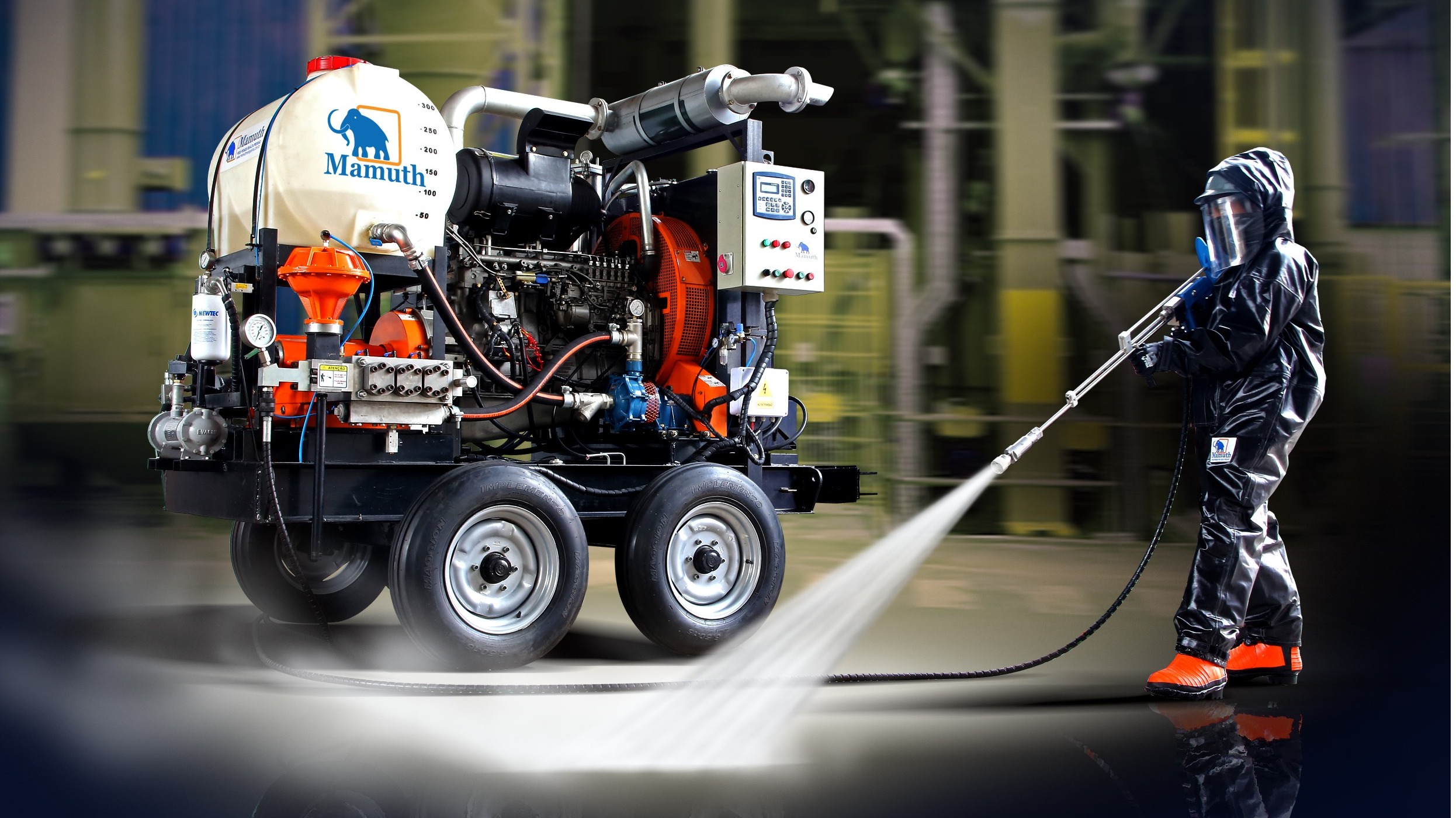 A Mamuth atua no segmento de hidrojateadoras, vestimentas de proteção, acessórios, mangueiras e conexões para diversos tipos de aplicações em hidrojateamento e limpeza industrial de baixa, média, alta e ultra alta pressão até 43.500 psi (3.000 bar), no Brasil somos distribuidores autorizados e homologados das mangueiras Parker Polyflex.