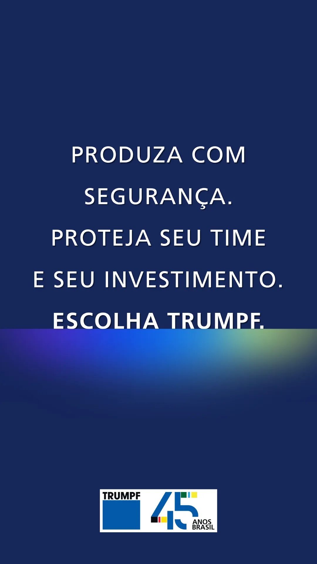 Produza com segurança. Proteja seu time e seu investimento. Escolha TRUMPF.
