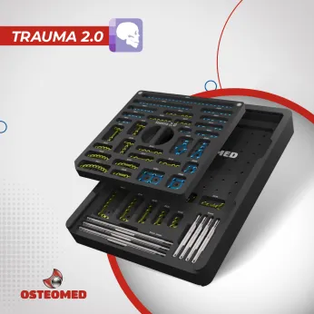 Essa expertise reflete-se em um portfólio diversificado e tecnológico. Na Linha de Coluna, oferecemos sistemas de estabilização que respeitam a biomecânica vertebral, enquanto na Bucomaxilofacial, nossas placas e parafusos de perfil reduzido garantem reconstruções faciais precisas e estéticas. Avançamos na medicina personalizada com a Linha Custom Made, utilizando planejamento 3D para criar implantes sob medida para anatomias complexas. Além disso, nossa linha de Descartáveis assegura a esterilidade e eficiência logística nos centros cirúrgicos. Na fronteira da reabilitação, a tecnologia Haste Endo-Exo revoluciona a vida de amputados ao permitir a osteointegração direta, eliminando encaixes convencionais e devolvendo a propriocepção ao paciente. Assim, a Osteomed transforma a ciência dos materiais em soluções vitais, reafirmando seu compromisso com a evolução da medicina e a qualidade de vida.